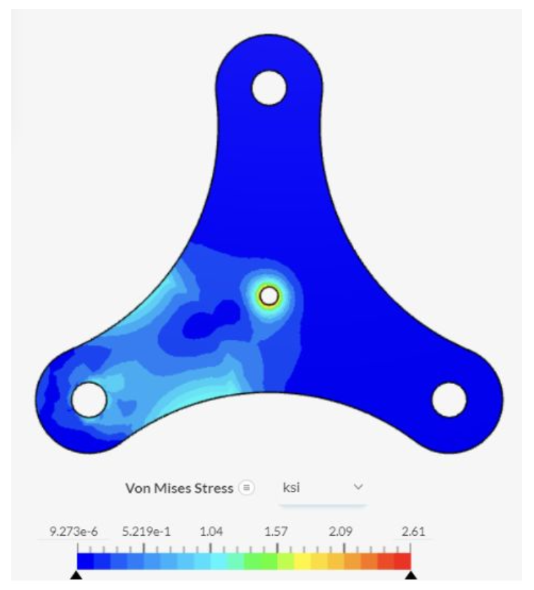 Von Mises stress distribution in tri-wheel plate