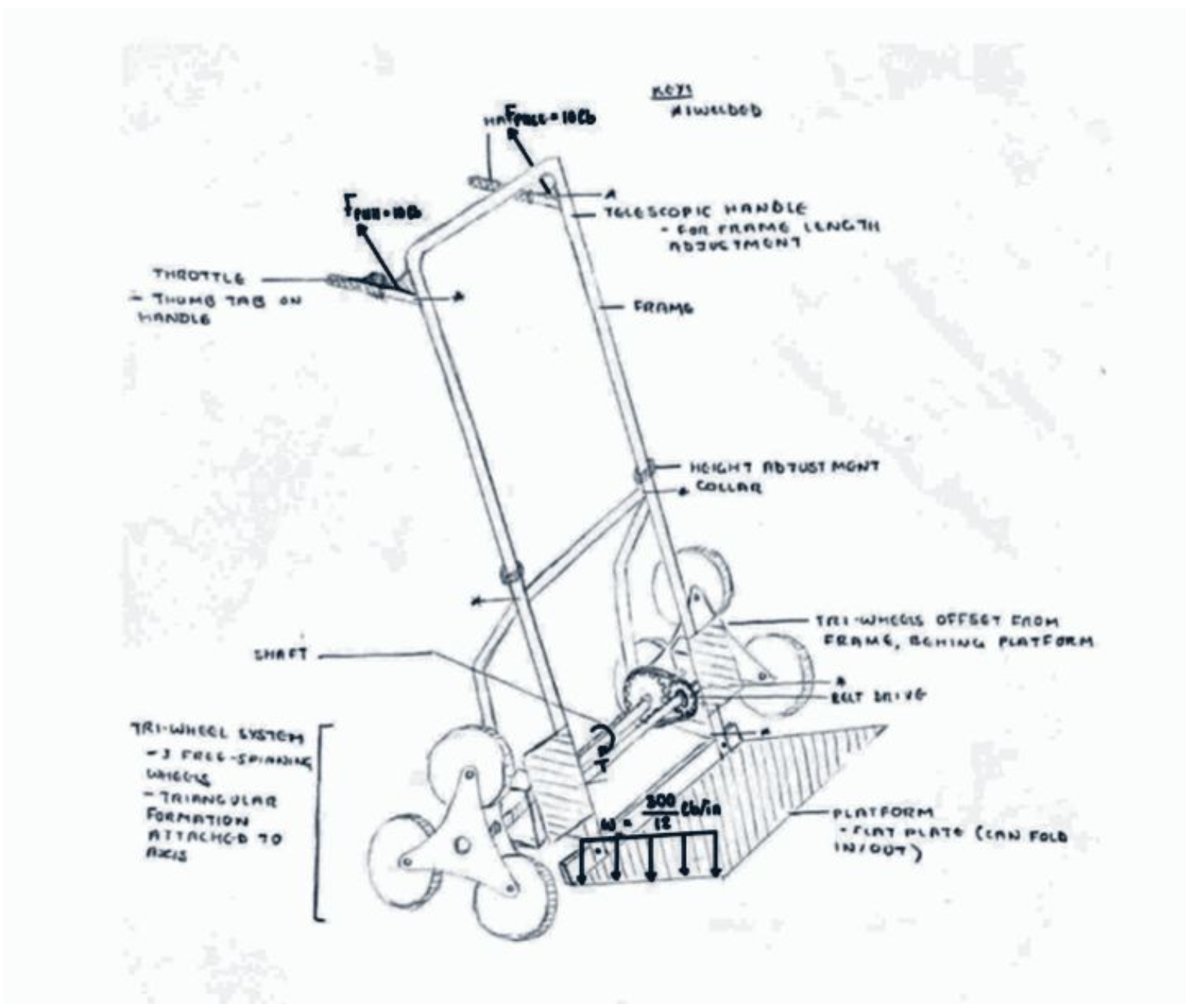 Concept: Motorized tri-wheel dolly designed for autonomous stair climbing under load
